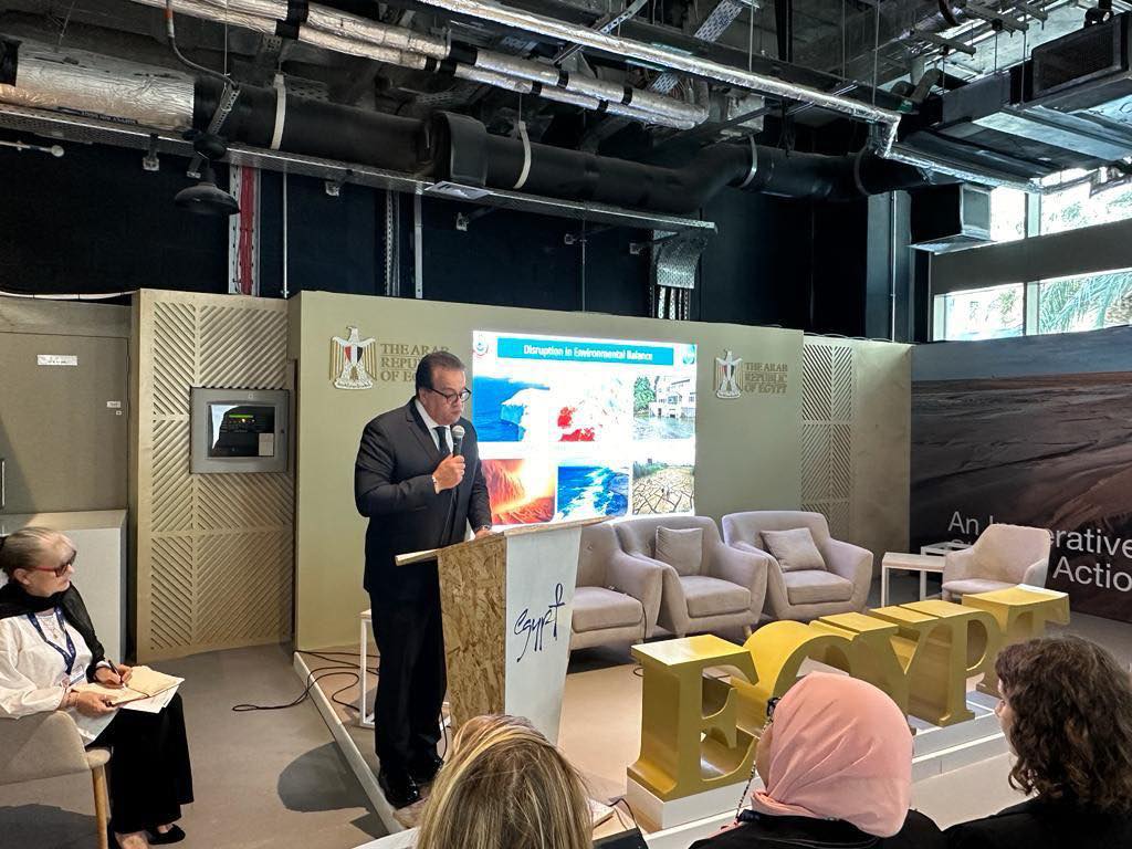 جاء ذلك في كلمة وزير الصحة والسكان، خلال جلسة نقاشية، عقدت اليوم الأحد، على هامش اجتماعات مؤتمر المناخ «COP 28» الذي تستضيفه إمارة «دبي» بدولة الإمارات العربية المتحدة في الفترة من 30 نوفمبر إلى 12 ديسمبر 2023.