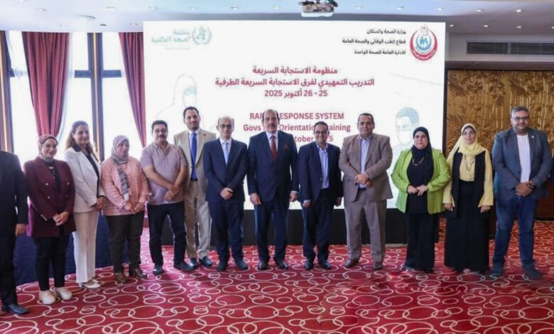 جاء ذلك خلال كلمته في ورشة العمل الختامية للبرنامج التدريبي التمهيدي لفرق الاستجابة السريعة بجميع المحافظات، بالتعاون مع منظمة الصحة العالمية، وفق توجيهات الدكتور خالد عبدالغفار، نائب رئيس مجلس الوزراء ووزير الصحة والسكان، بتفعيل منظومة الاستجابة السريعة متعددة التخصصات على مستوى الجمهورية؛ لضمان سرعة التعامل مع أي حدث صحي طارئ يؤثر على الصحة العامة، وتعزيز التنسيق الميداني بين الإدارات والقطاعات المعنية.