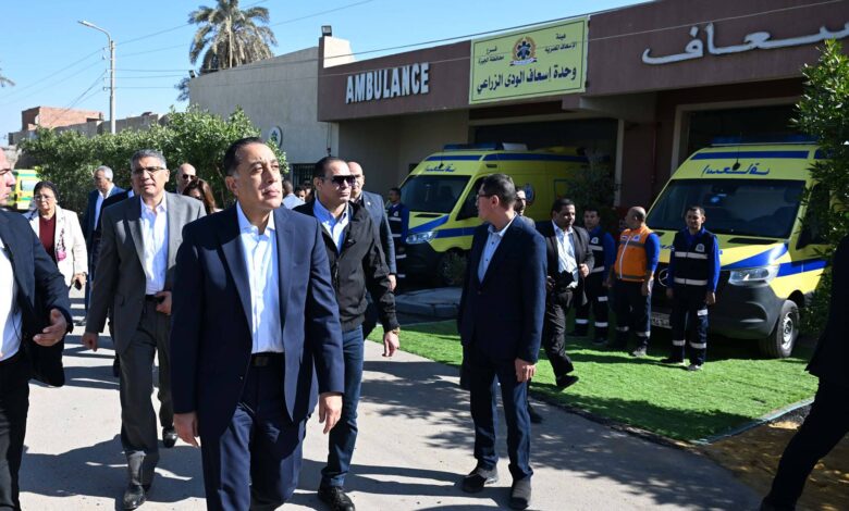وتفقد رئيس الوزراء نموذجا لإحدى سيارات الإسعاف، ضمن سيارات الخدمة بنقطة الإسعاف، واطلع على الإمكانات المتوافرة بها لخدمة أهالي القرى التي تخدمها، وخدمة الطرق السريعة والزراعية.