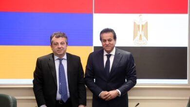 وزير الصحة يبحث مع سفير أرمينيا تعزيز التعاون الصحي وتوسيع الشراكات في التصنيع الدوائي والتأمين الصحي