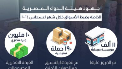قامت هيئة الدواء المصرية وفروعها بالمحافظات بالتنسيق مع الجهات الرقابية والأمنية المختلفة، بتكثيف جهود حملات التفتيش الموسعة، خلال شهر اغسطس…
